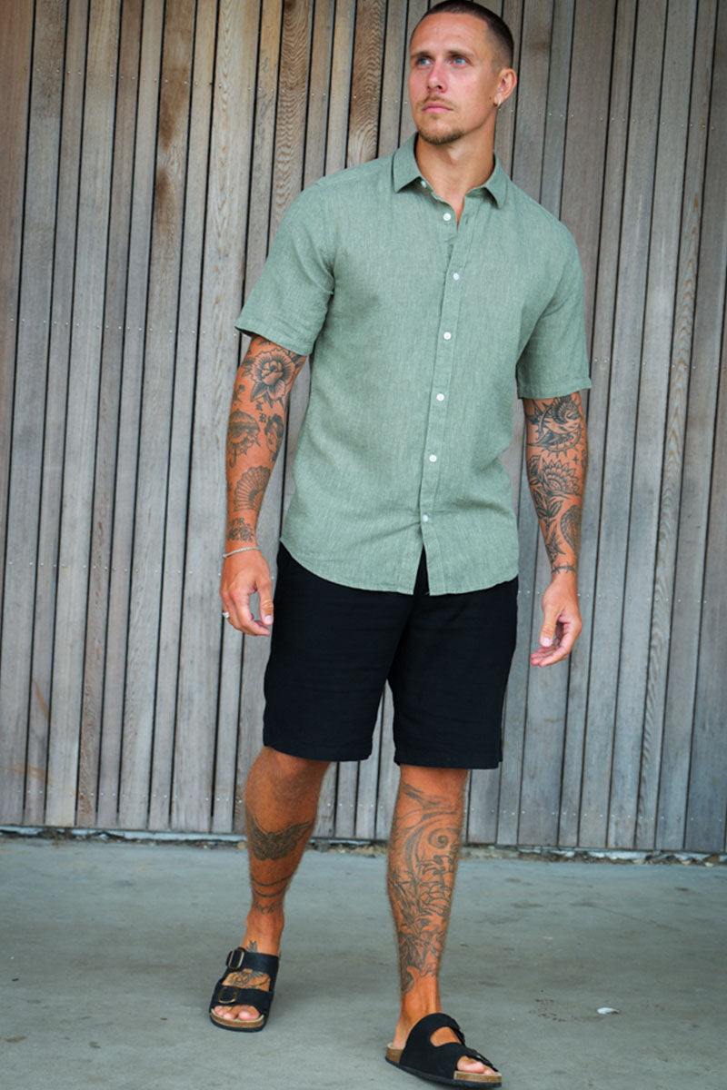 Caiden SS Linen Shirt Swamp