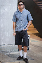 - Kortermet skjorte med små, geometriske mønstre.