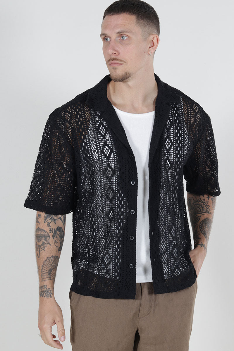 Novak Relax Resort SS Lace Shirt Black