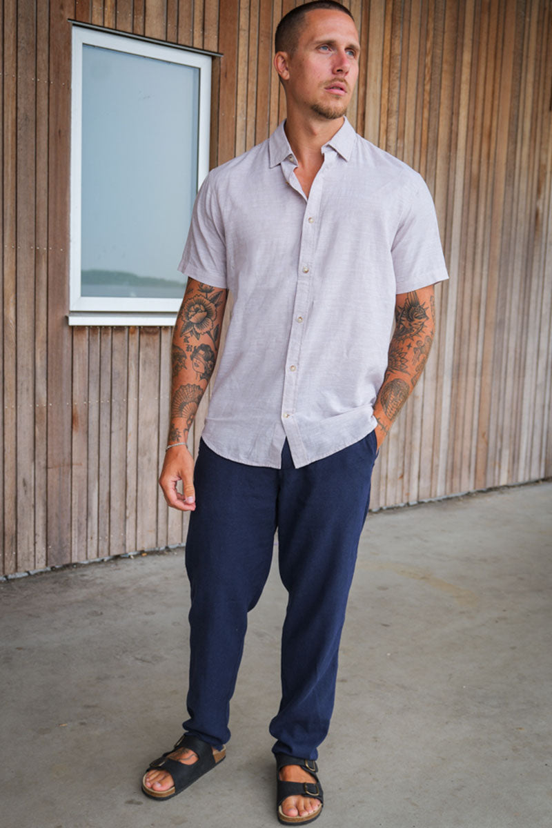 • Kortermet linskjorte med klassisk krage.