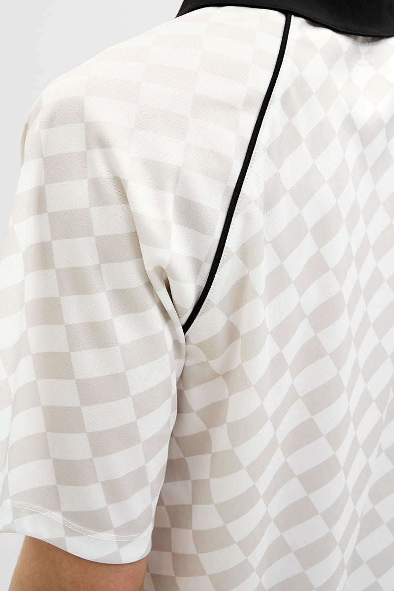 Retreat AOP Mesh Open Collar Polo SS Cloud Dancer