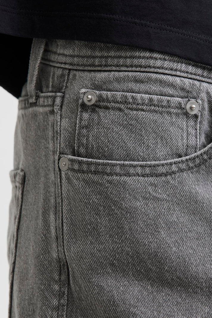 Disse jeansene har en avslappet passform med en midje som sitter behagelig på midten. Med klassisk femlommersdesign og knappelukking kombinerer de tidløs stil med funksjonalitet. Materialmiks av økologisk bomull og resirkulert bomull gir en myk og pustende følelse, samtidig som plagget er mer bærekraftig. Den grå denimbuken har en rensebehandling som fjerner overflødig farge for et rent og mykt uttrykk.