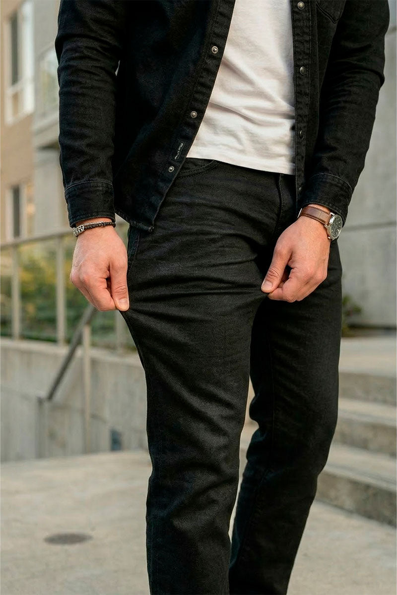 Disse jeansene kombinerer komfort og stil med en naturlig følelse takket være en myk blanding av bomull, polyester og elastan. Perfekt for menn som ønsker et tidløst plagg i svart denim som passer til mange anledninger. Passformen og stoffet gjør dem behagelige å ha på hele dagen.