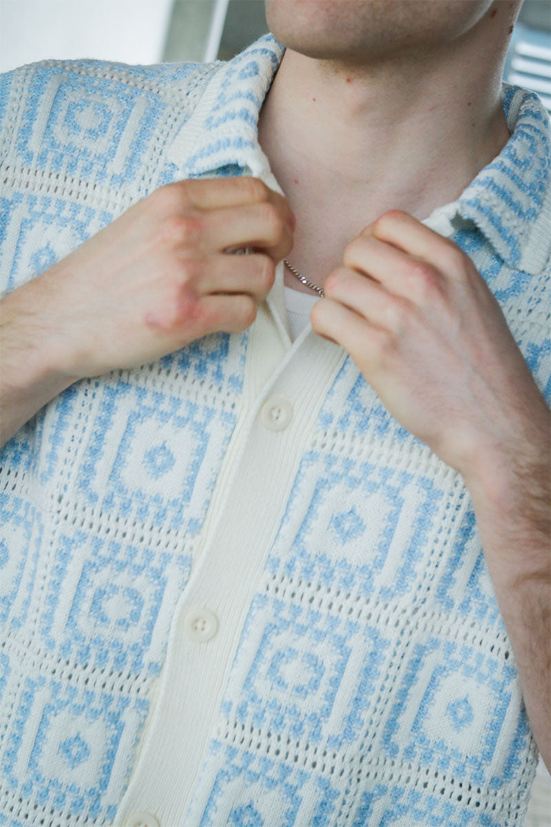 Cartagena Crochet Knit Polo Sea Salt