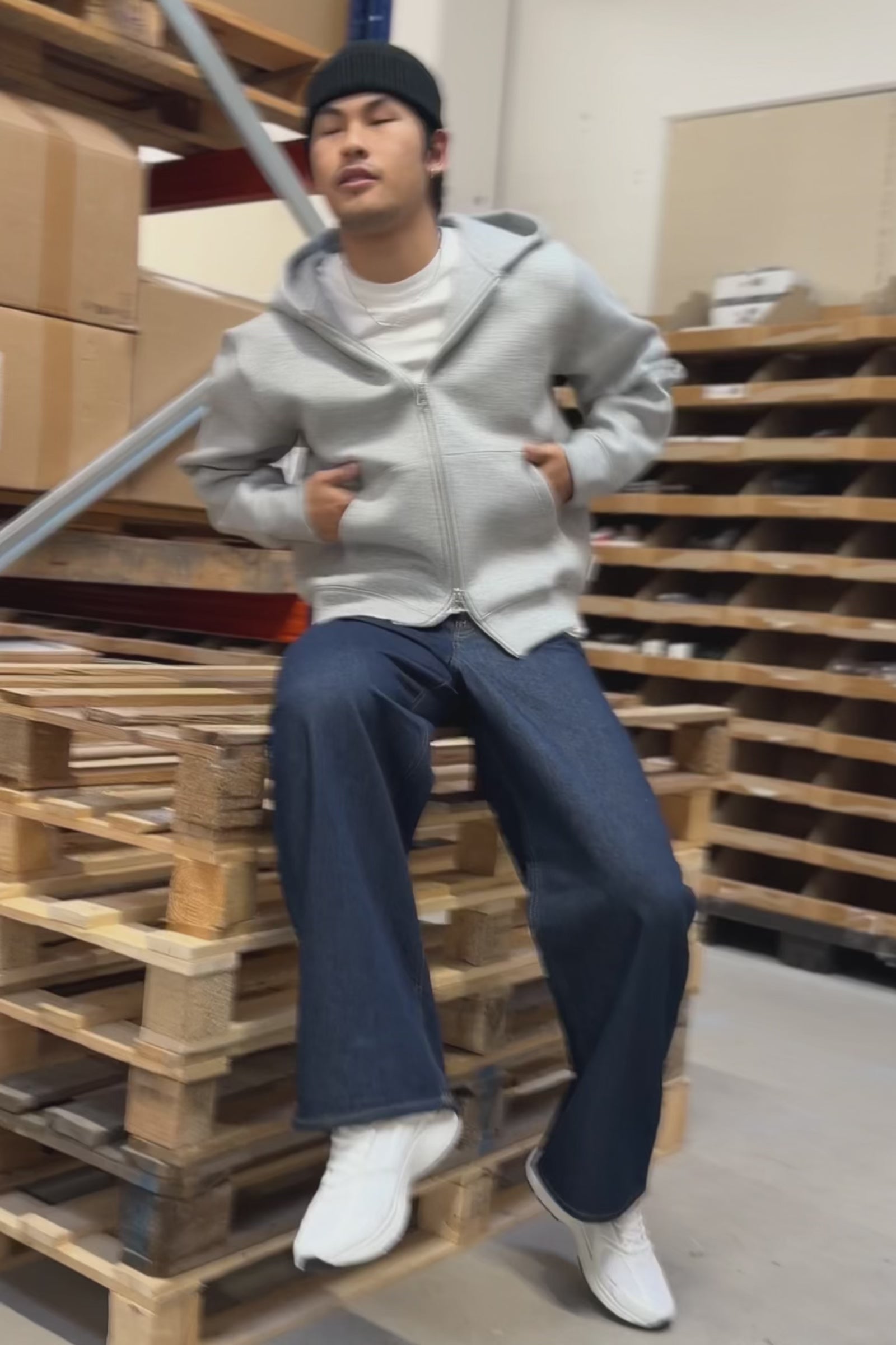Denne hættetrøya i lyst gråmelert er designet for en løs og komfortabel passform, perfekt for avslappede hverdags- og helgestiler. Laget av en myk og elastisk jerseykvalitet, som kombinerer resirkulert polyester, viscose og elastan, gir den både bevegelsesfrihet og holdbarhet. Modellen har lang erme, glidelås foran og en praktisk hette, noe som gjør den til et funksjonelt og tidløst plagg for fritiden.