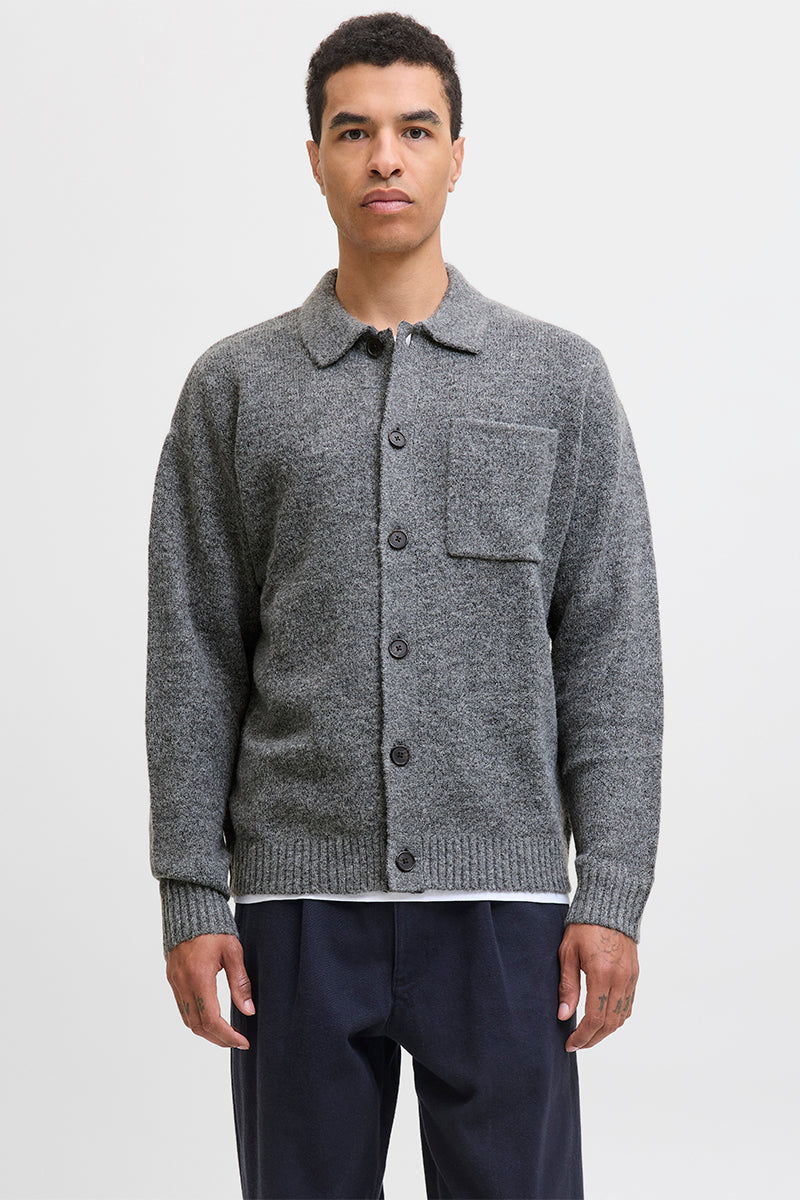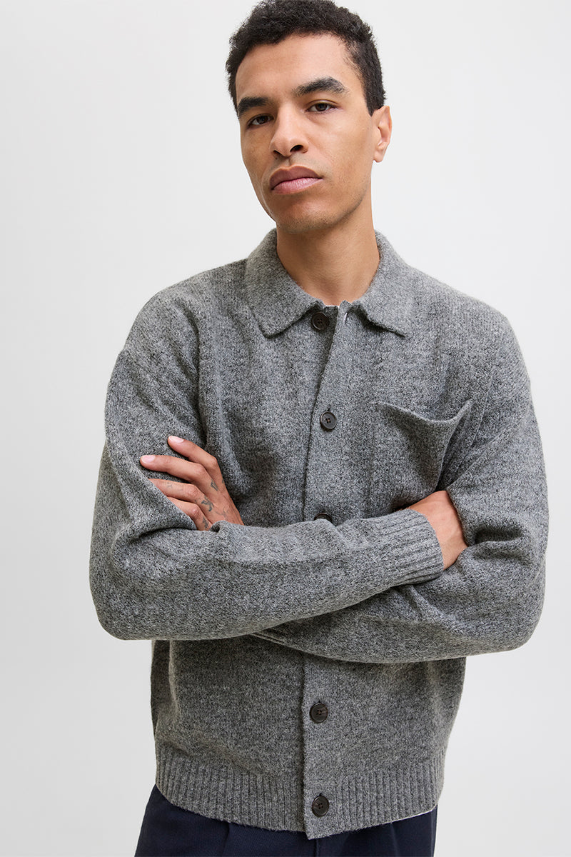 Finn Knit Button Cardigan Medium Grey Melange