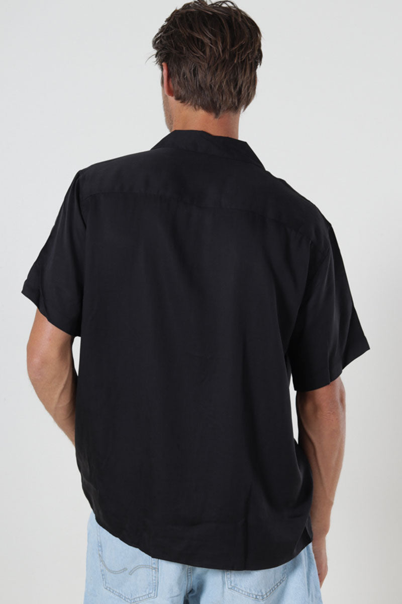 Charlie Satin SS Relaxed Fit Resort Shirt Black