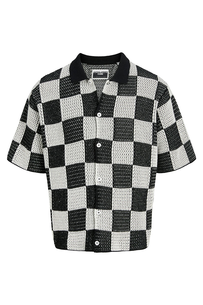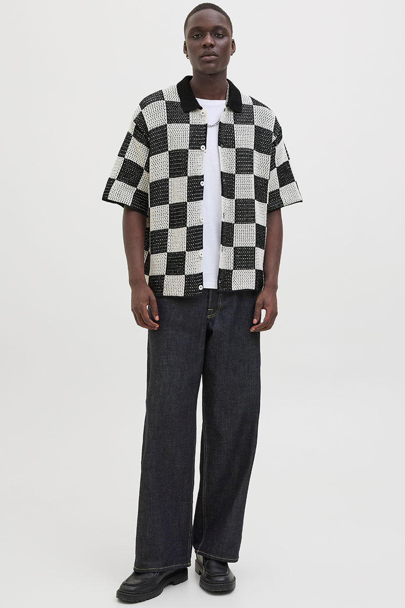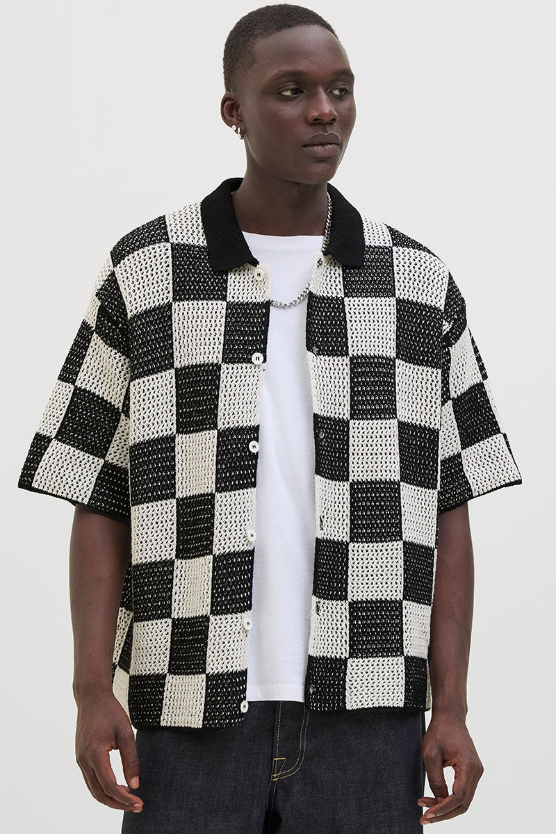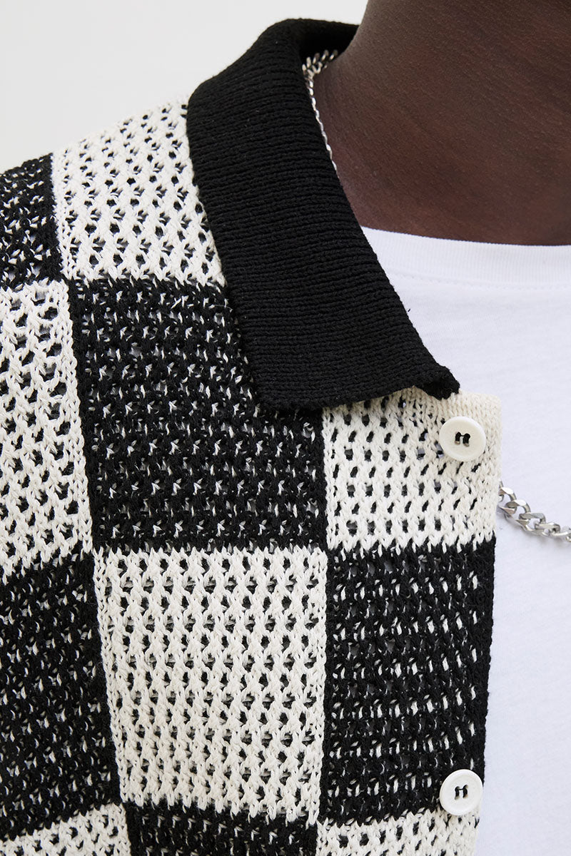 - Rutete kortermet strikk i loose fit.