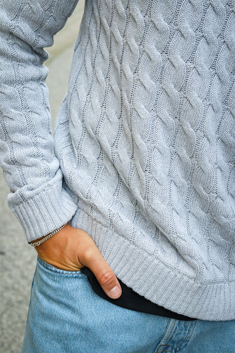 Kicker Cable Knit Half Zip Light Grey Melange