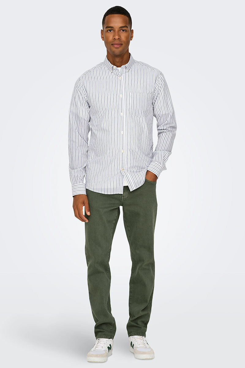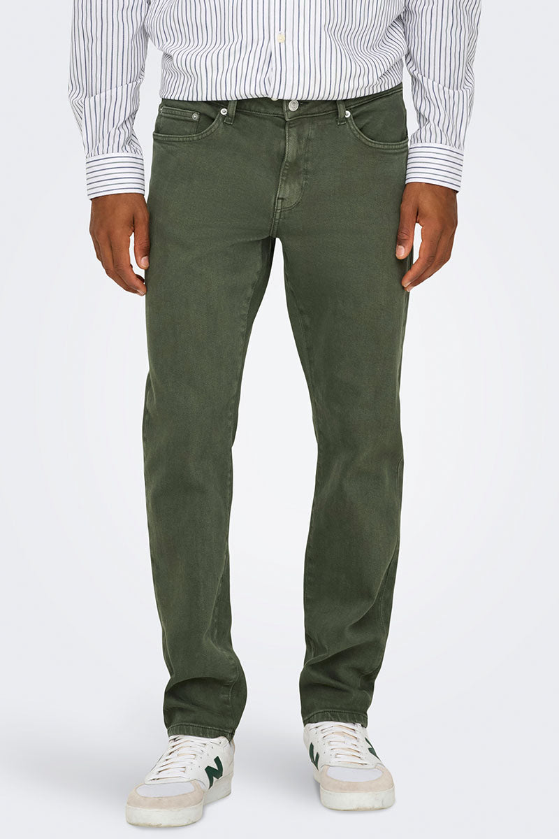 - Materiale: 68% Bomull, 30% Resirkulert Bomull, 2% Elastan