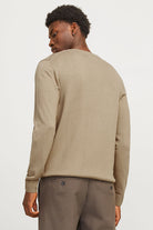- Beige langermet strikkegenser i knit fit.