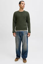 - Mørkegrønn langermet strikk i regular fit