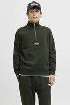 - Half‑zip sweatshirt i relaxed fit med lange ermer og et lite brysttrykk