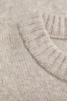 - Beige langermet strikke‑genser