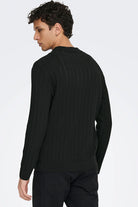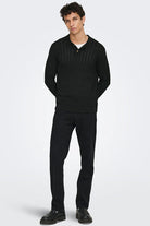 - Sort langermet polo‑strikk i regular fit