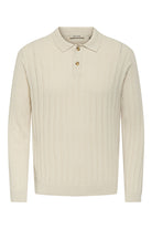- Beige langermet polo‑strikk i regular fit