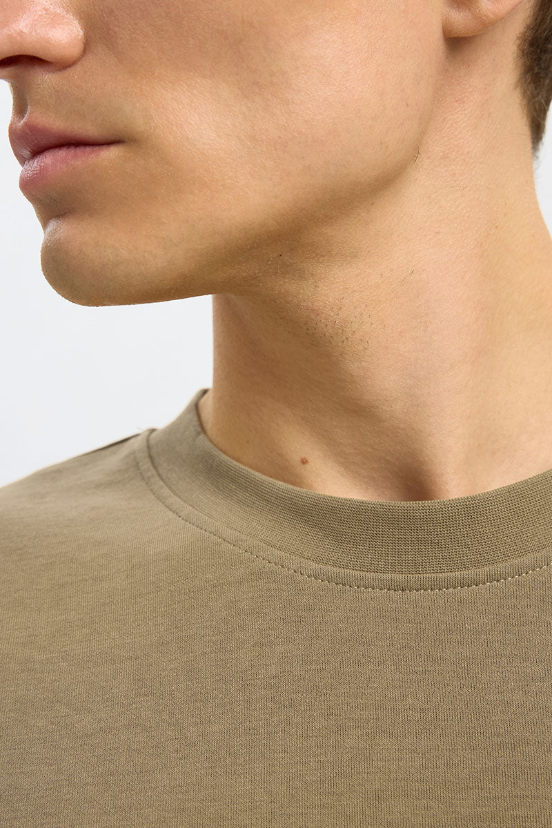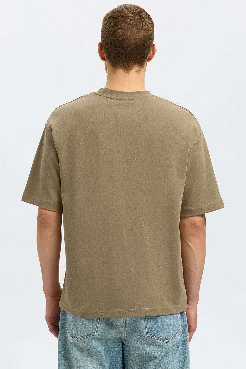 - Beige t-skjorte i avslappet passform