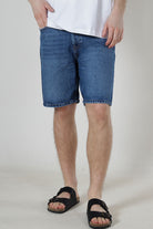 Edge Straight Fit Denim Shorts Medium Blue Denim