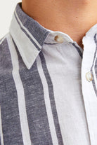 JJESUMMER LINEN BLEND SHIRT LS SN Navy Big Stripe