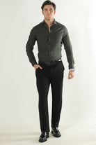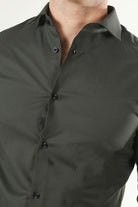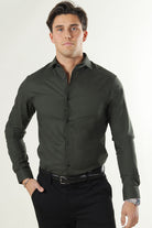 - Mørkegrønn langermet skjorte i slim fit