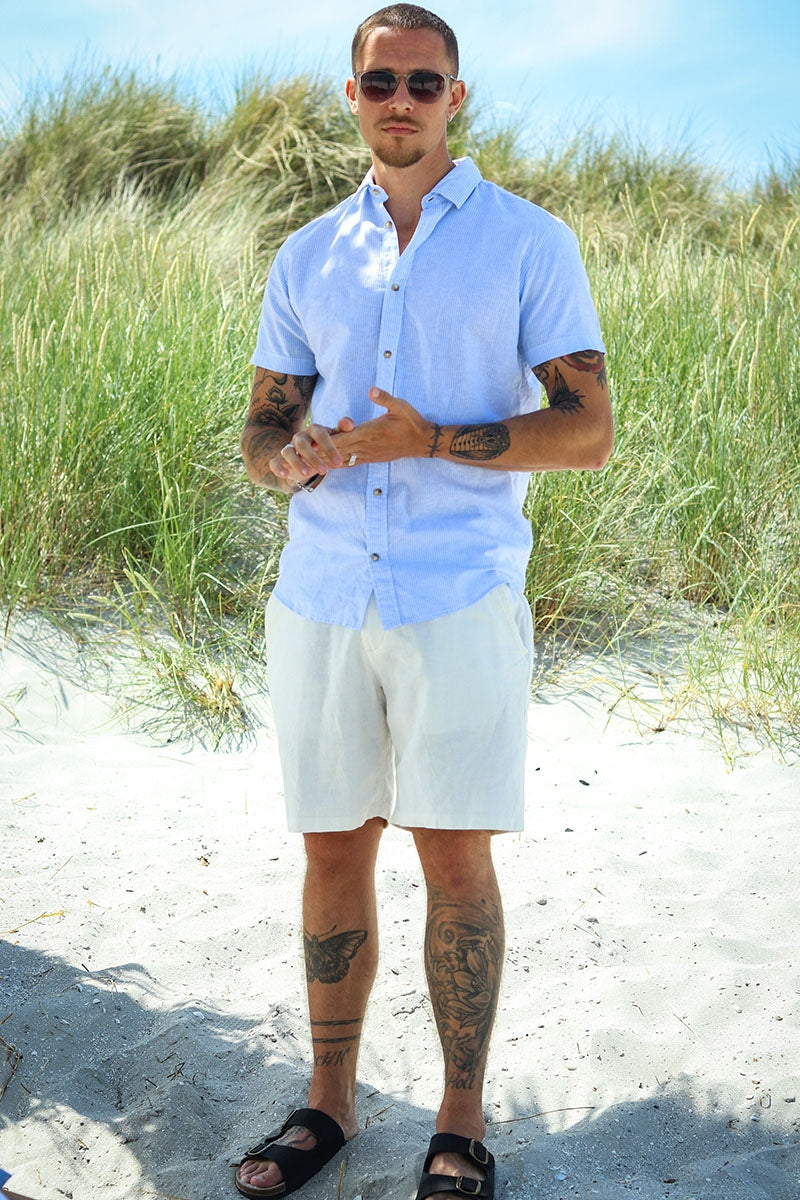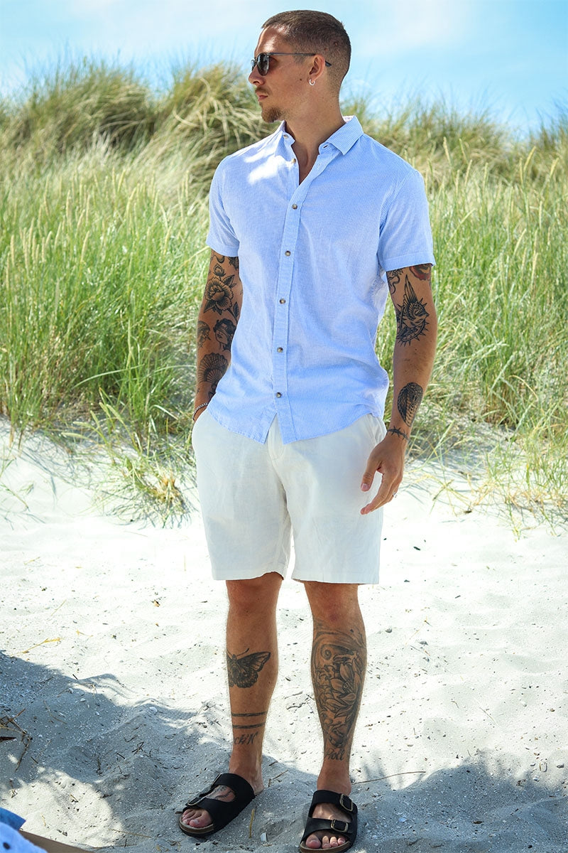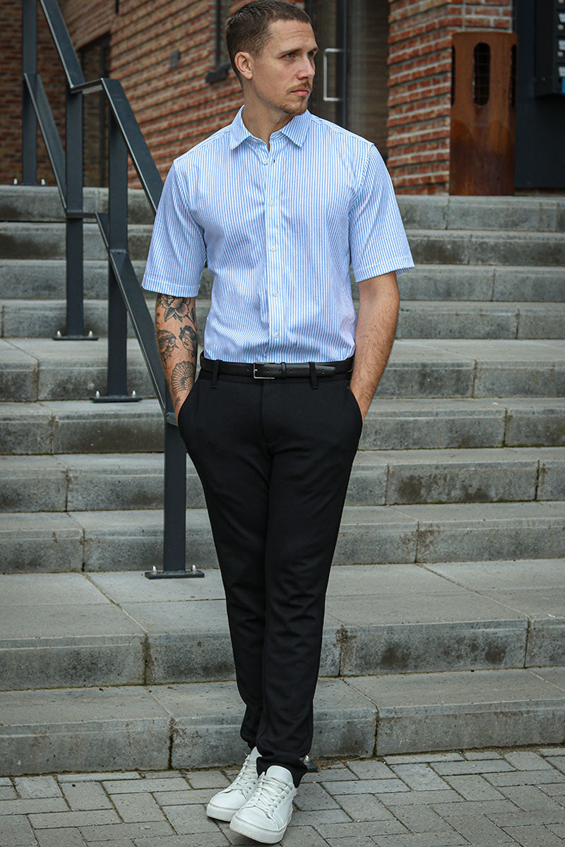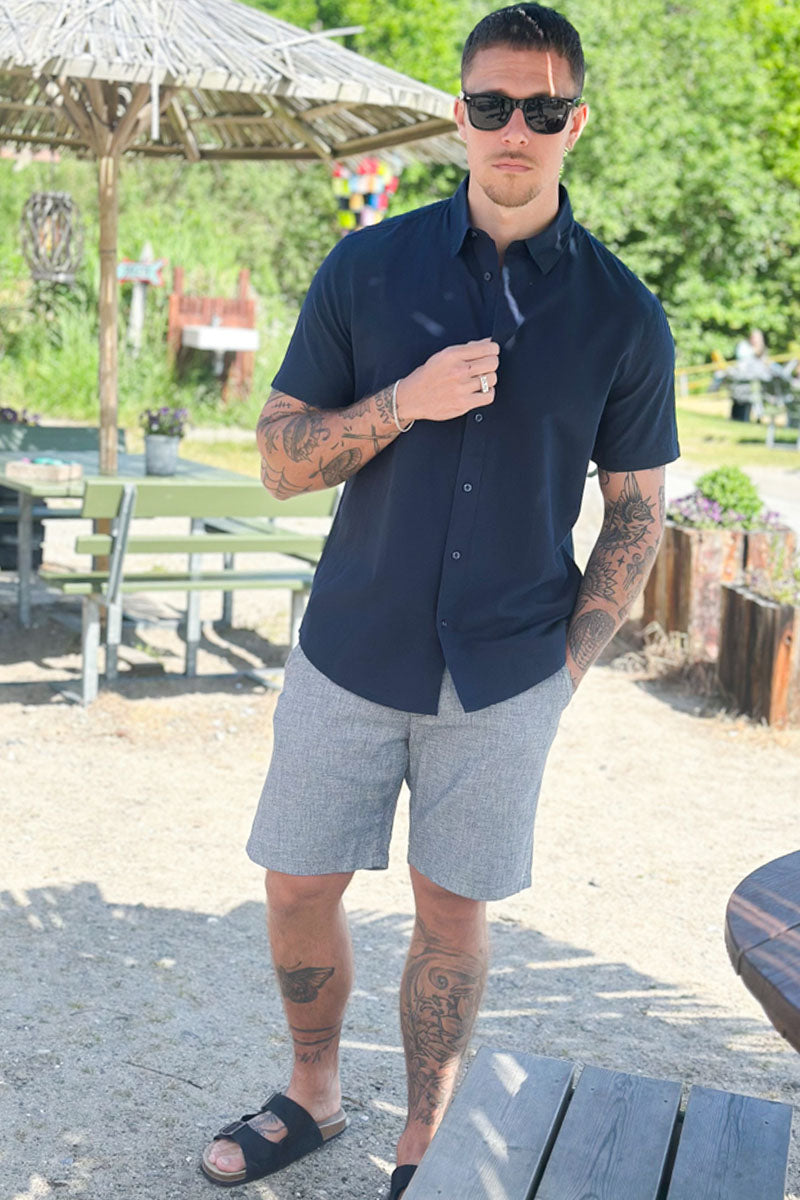 I lang tid har det vært de lange ermene som har vært mest fremtredende når det kommer til skjorter, og det er det fortsatt. De lange ermene er et symbol på en stilig mann og antrekk. Imidlertid har korte ermer blitt stadig mer populære, spesielt i sommermånedene, hvor de tilfører litt mer stil enn en vanlig t-skjorte. Du finner et bredt utvalg av vakre, stilige og morsomme skjorter på 2trendy. Dette gir det muligheten til å kombinere antrekket ditt og uttrykke deg fritt. Du kan, som nevnt ovenfor, ha en mer formell stil med dress og slips, eller så kan du gå for et par jeans og være mer avslappet. Om sommeren er en kortermet skjorte med et par shorts perfekt for varmen, og du vil fortsatt se upåklagelig ut.