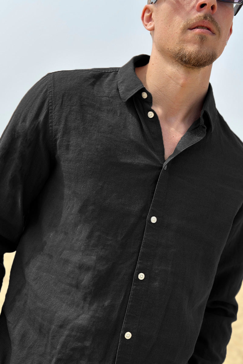 Enea Allan Linen Shirt LS True Black