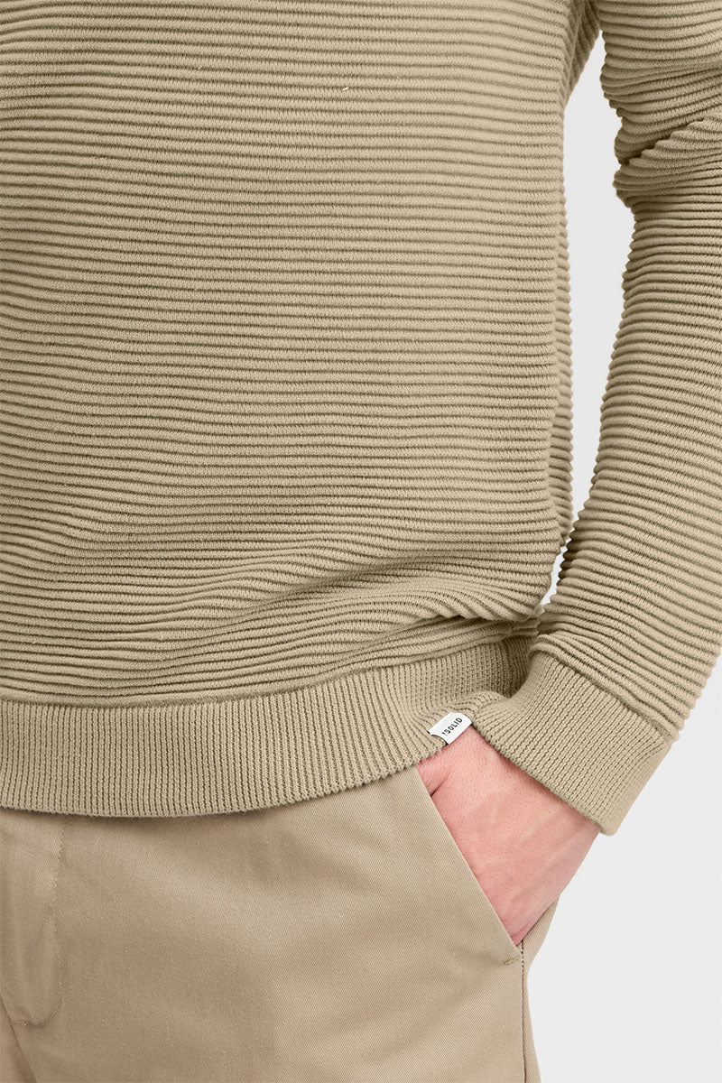 - Genseren har ribbekanter nederst, på ermene og i halsen.