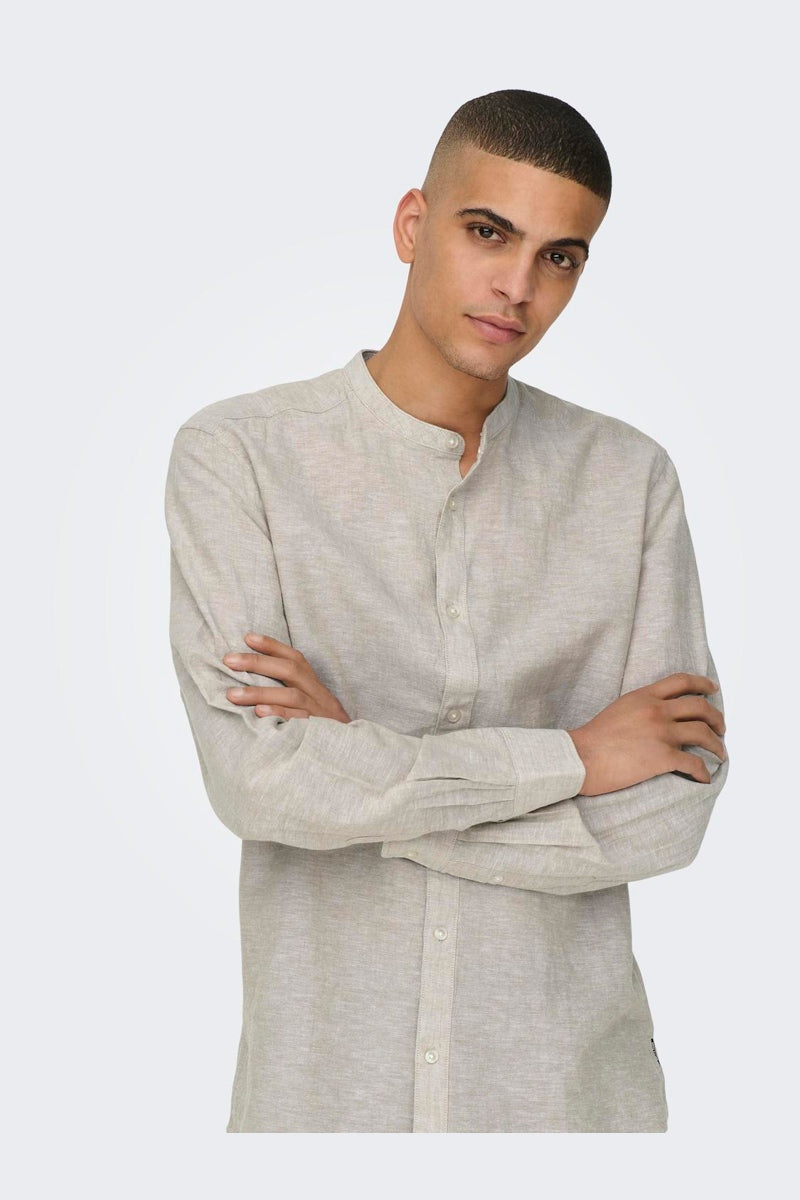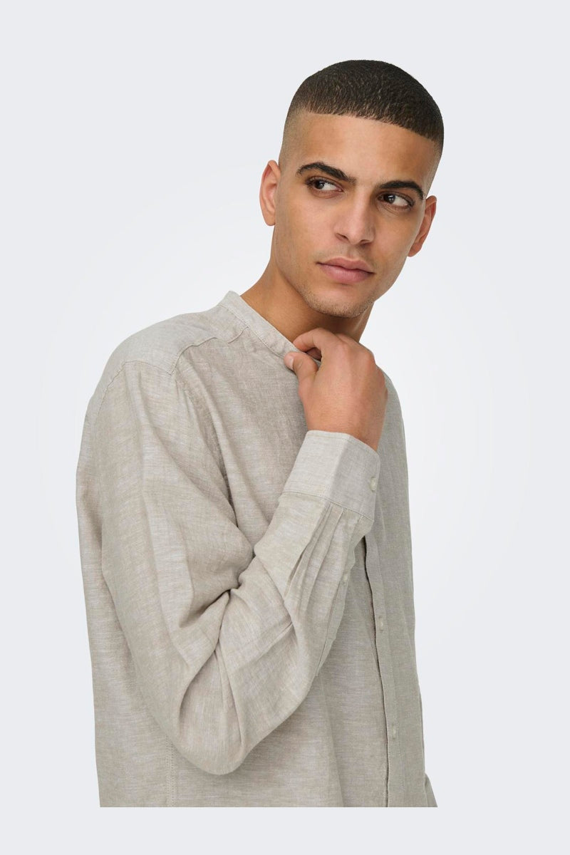 ONSCAIDEN LS SOLID LINEN MAO SHIRT NOOS Chinchilla