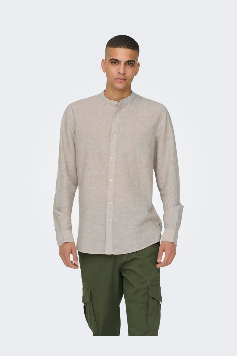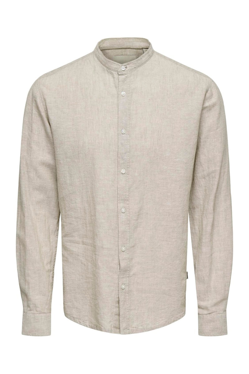 ONSCAIDEN LS SOLID LINEN MAO SHIRT NOOS Chinchilla