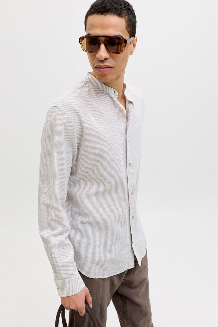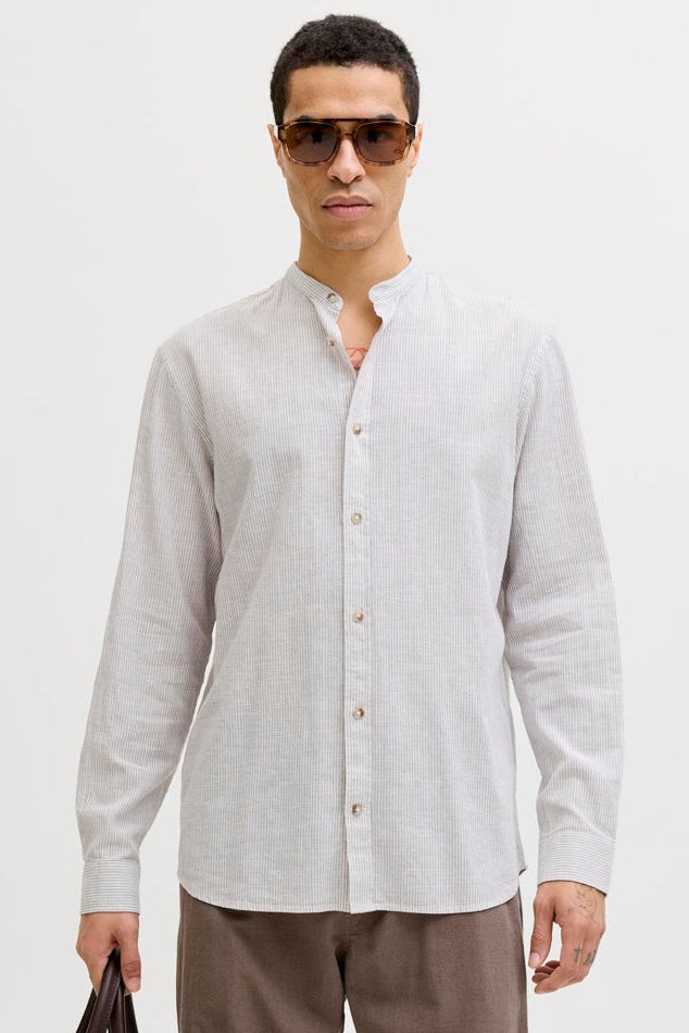 Summer Shirt Linen Blend Band LS Crockery