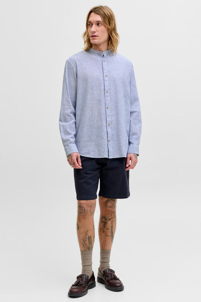 Caiden LS Mao Stripe Linen Shirt Cashmere Blue
