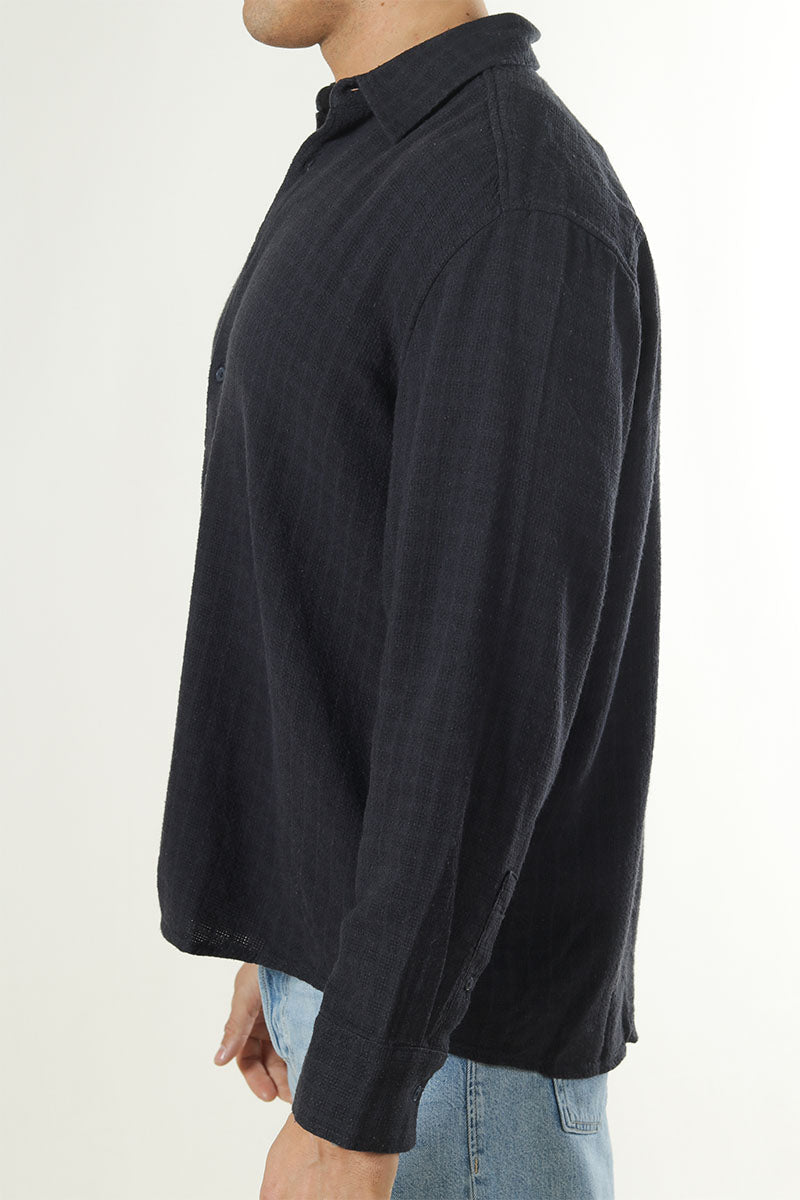 Latham LS Linen Structure Shirt Dark Navy