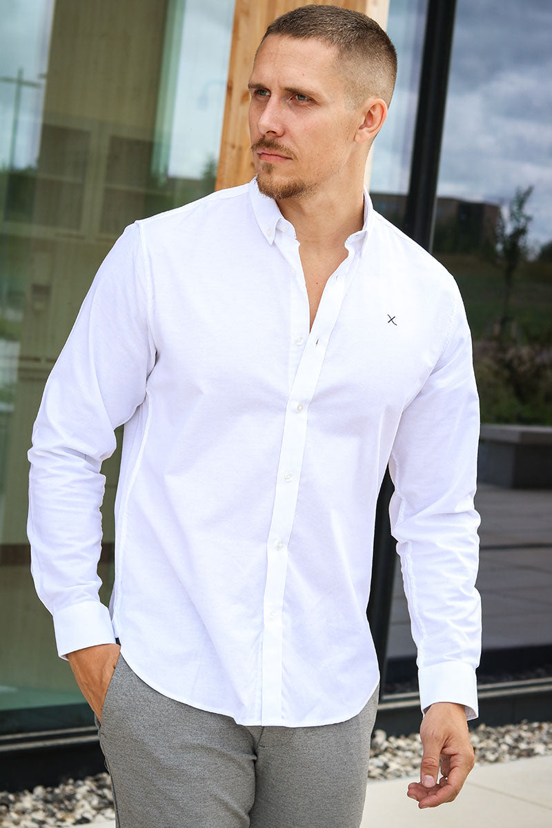 Oxford Stretch Plain L/S White