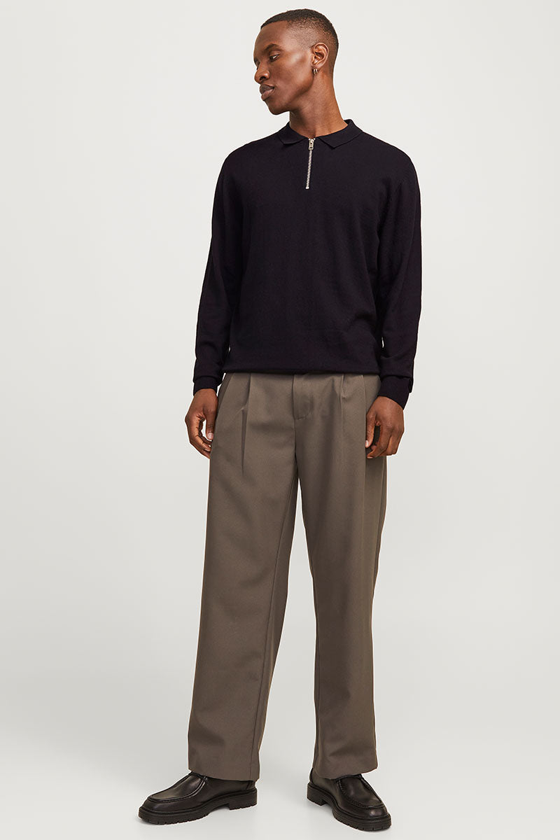 Emil Knit Polo Half Zip LS Black