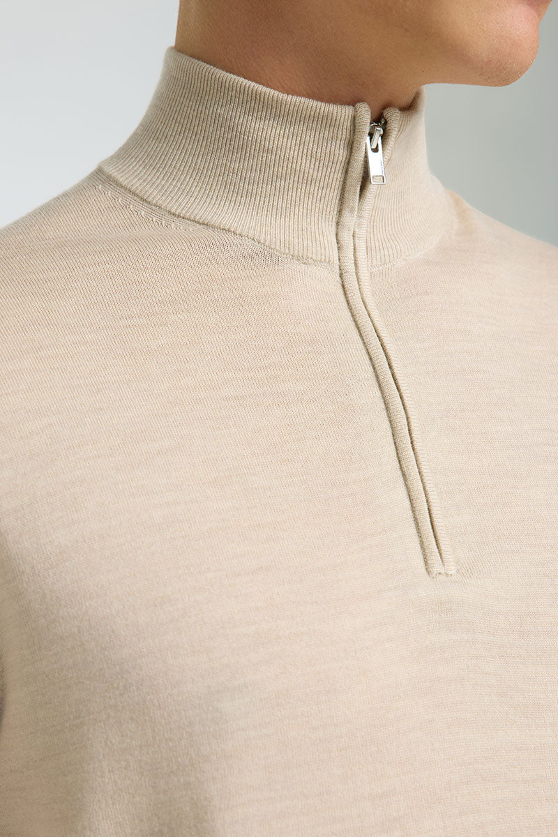 Tray Merino Knit Half Zip Oatmeal