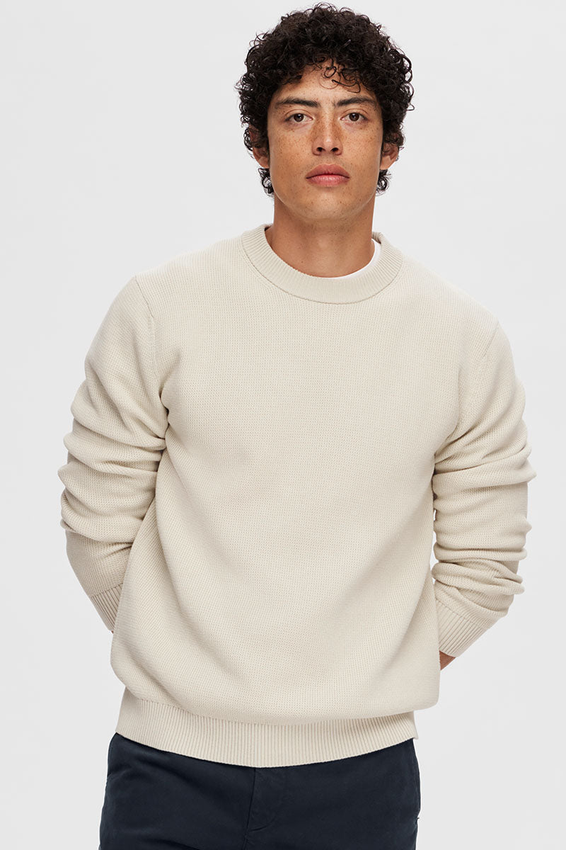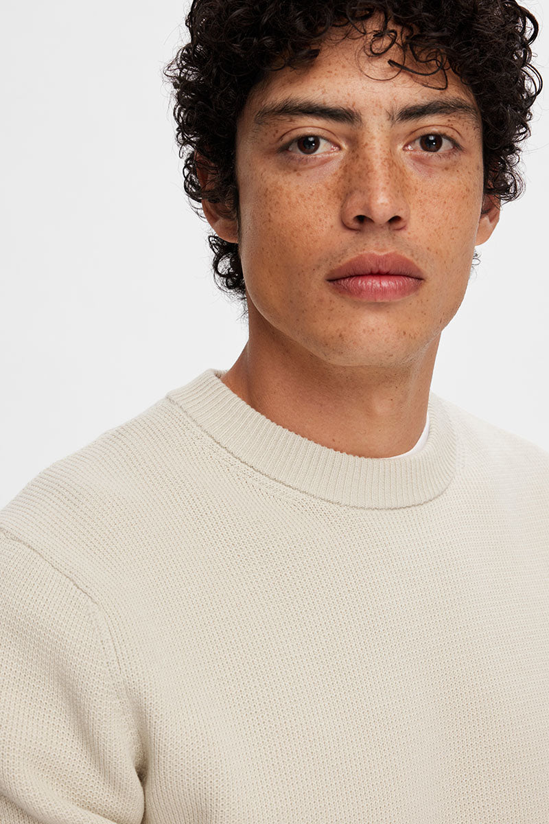 Dane LS Structure Knit Crew Neck Oatmeal