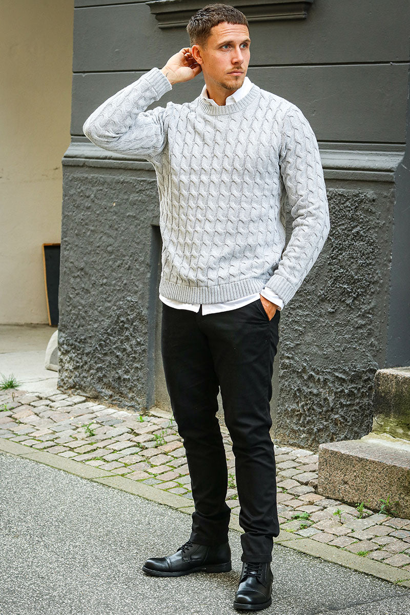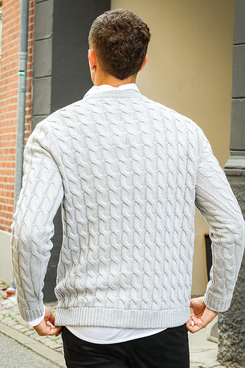 Kicker Cable Knit Crew Neck Light Grey Melange