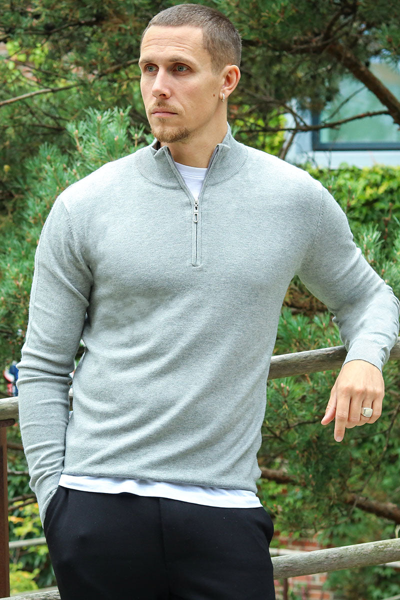 FRANKIE HALF ZIP KNIT Light Grey