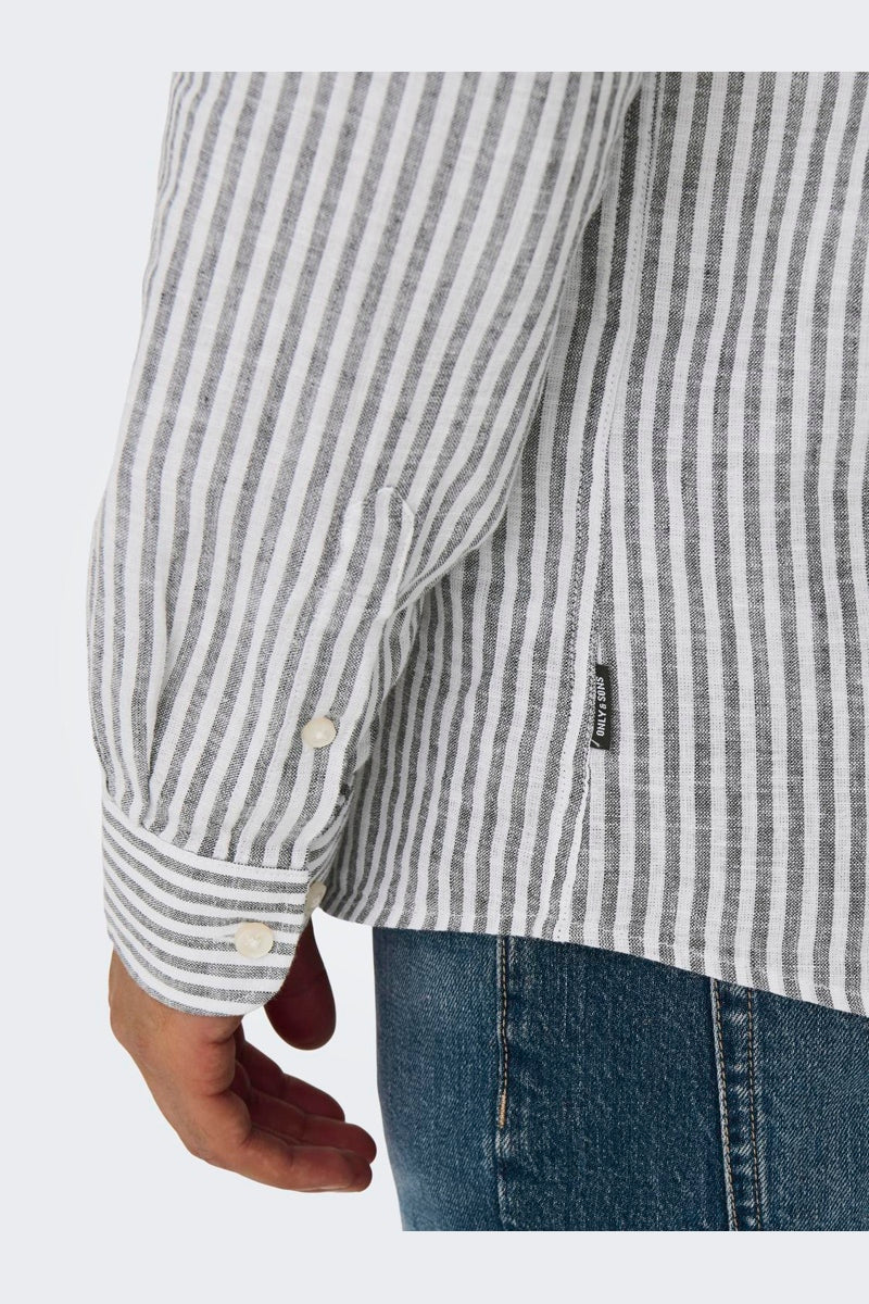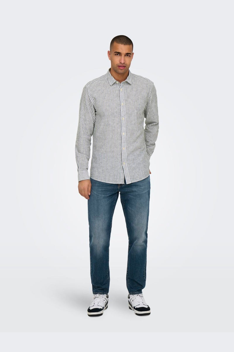 Caiden LS Stripe Linen Shirt Dark Navy