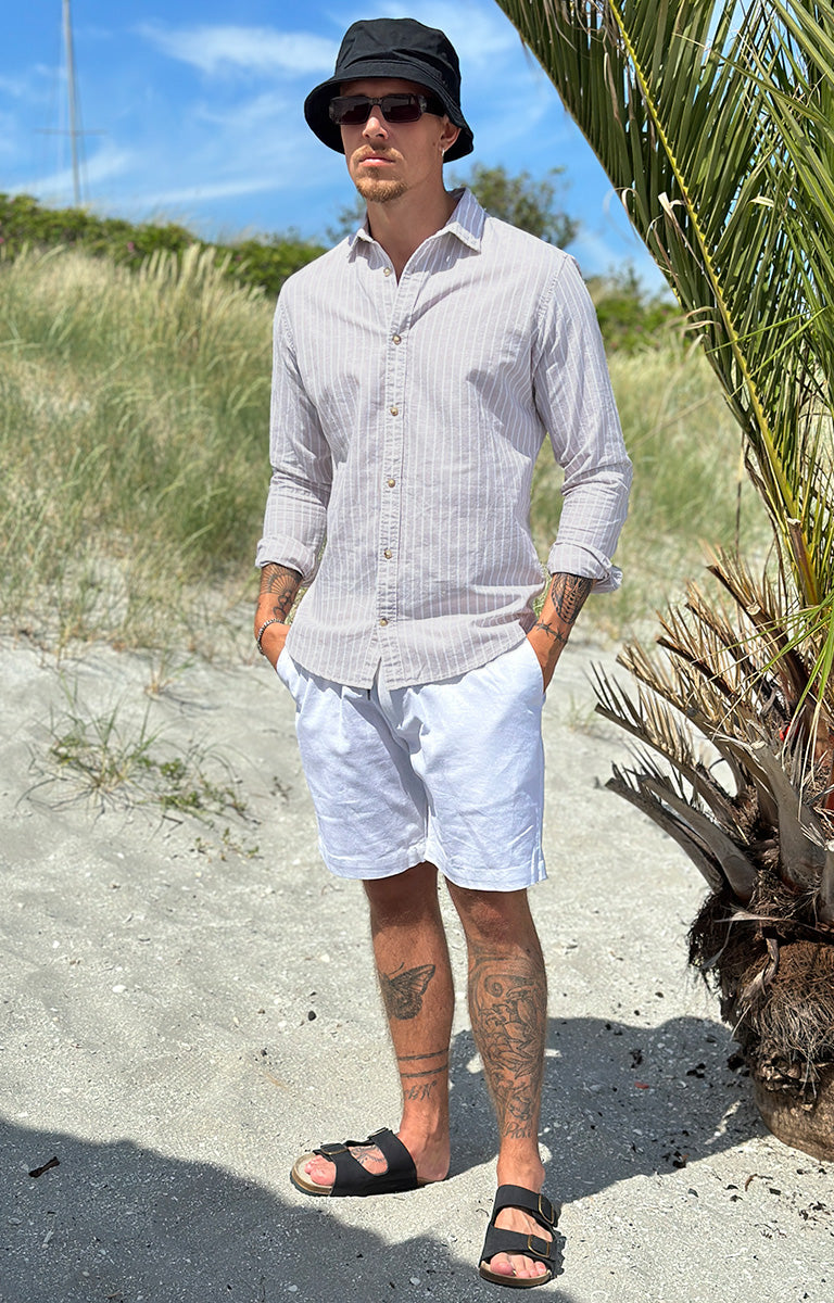 Summer Linen Shirt LS Crockery Stripe