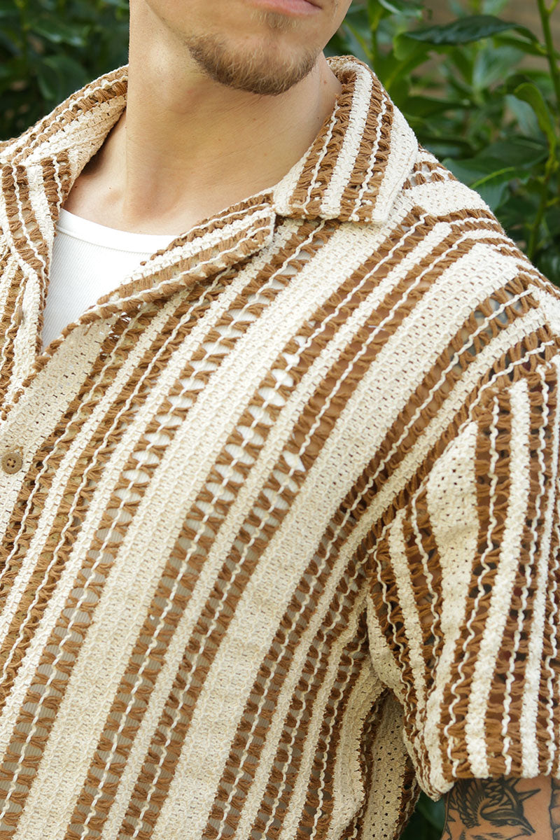 Dani Chrochet Resort SS Shirt Brown Stripe