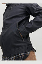 Denne jakken kombinerer et moderiktig uttrykk med praktiske detaljer som gjør den ideell for hverdagsbruk. Den har en klassisk bikerkrage og glidelåslukking som tilfører et tidløst preg. Materialet er slitesterkt polyester med en polyuretanbelegg som gir ekstra beskyttelse mot vind og vær, samtidig som den stilige quilted-detaljen gir jakken noe ekstra karakter.