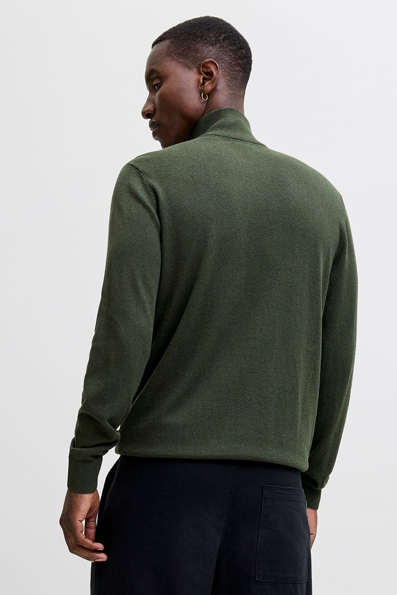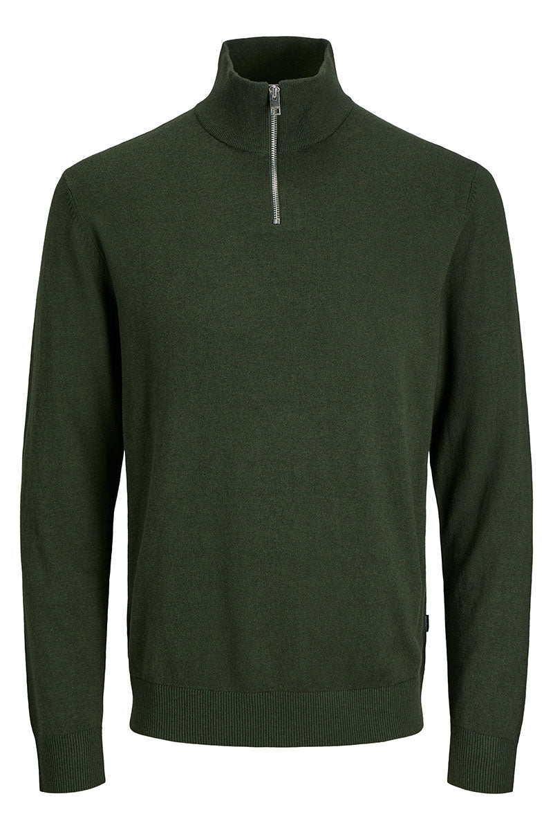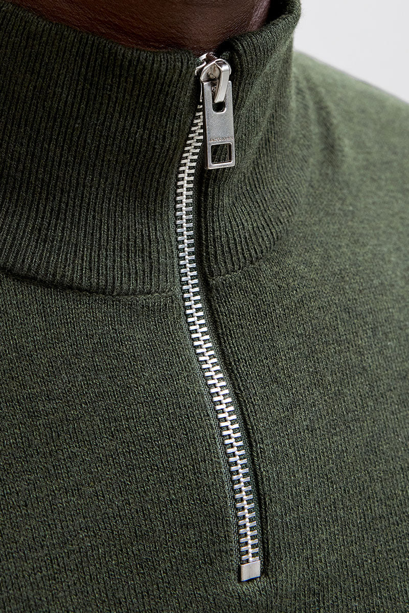 - Mørkegrønn langermet half zip-strikke‑genser