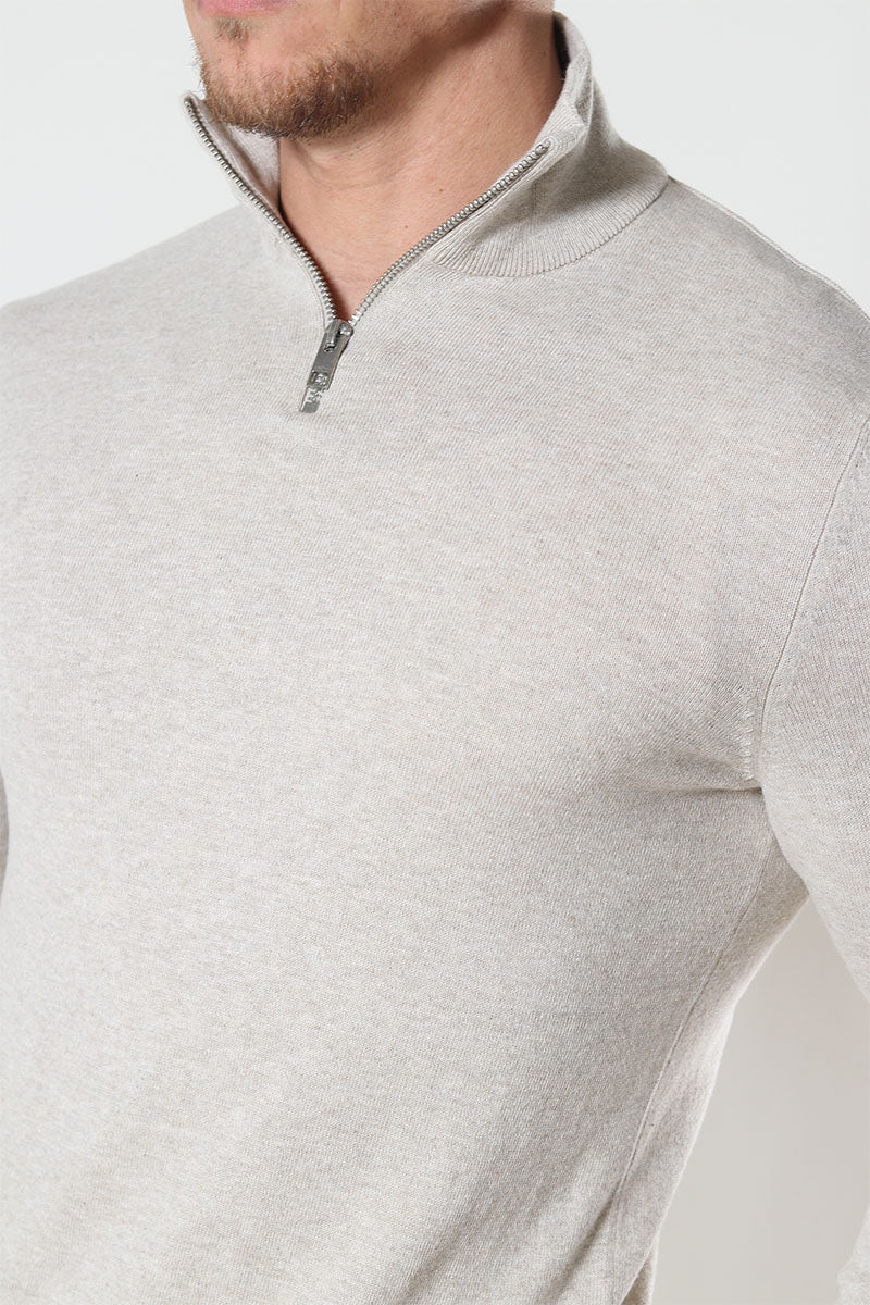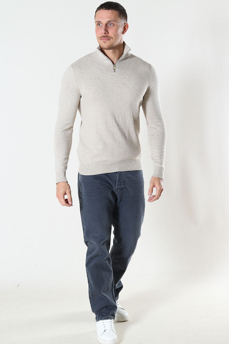JJEEMIL KNIT HALF ZIP NOOS Oatmeal