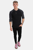 Raglan 3/4 sleeve Blk/Cha