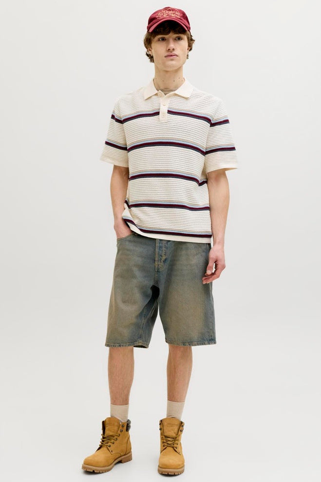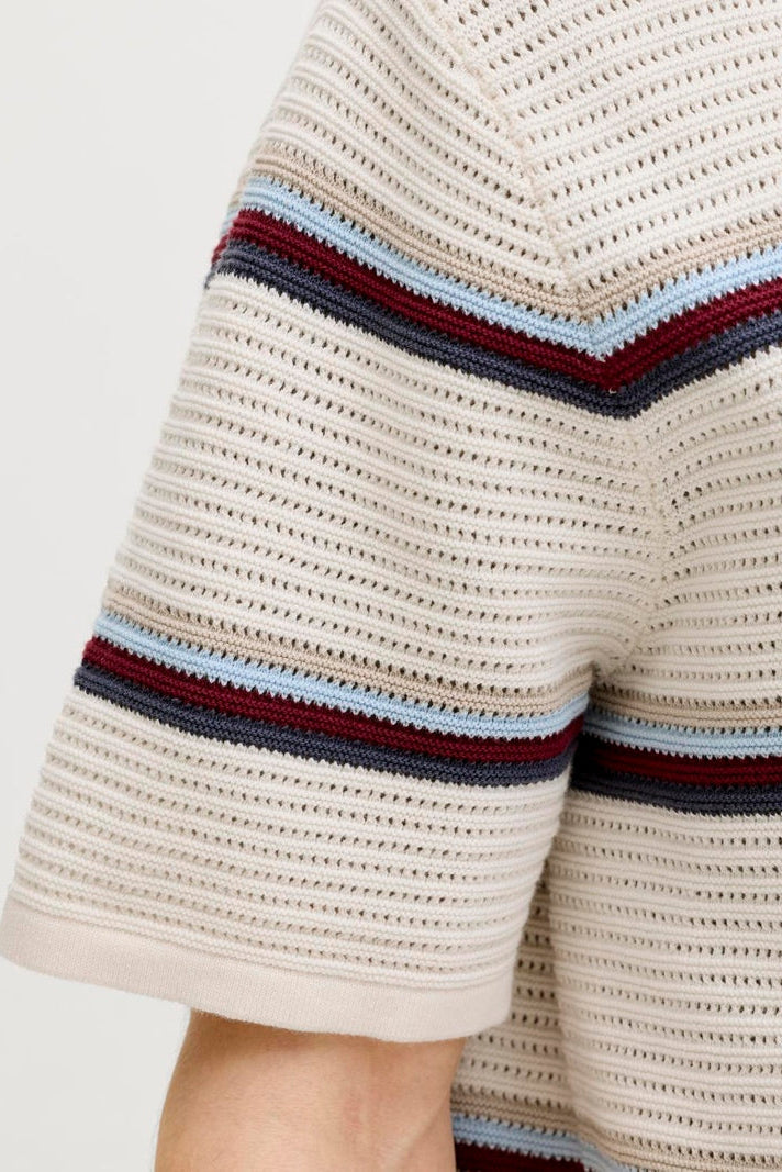 Jormaine Knit Stripe Polo Sea Salt Clothing