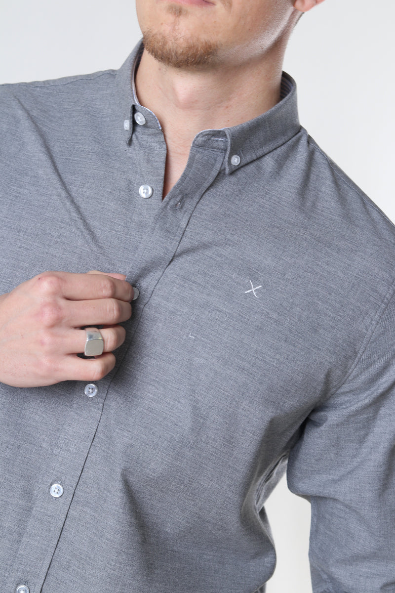 Oxford Stretch Plain L/S Light Grey Mel