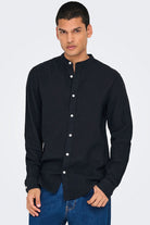 CAIDEN LS SOLID LINEN MAO SHIRT Black