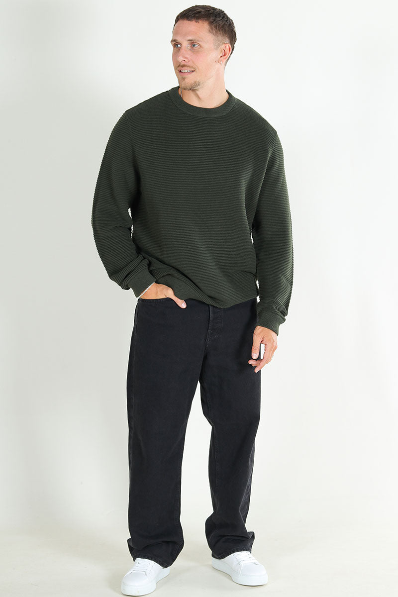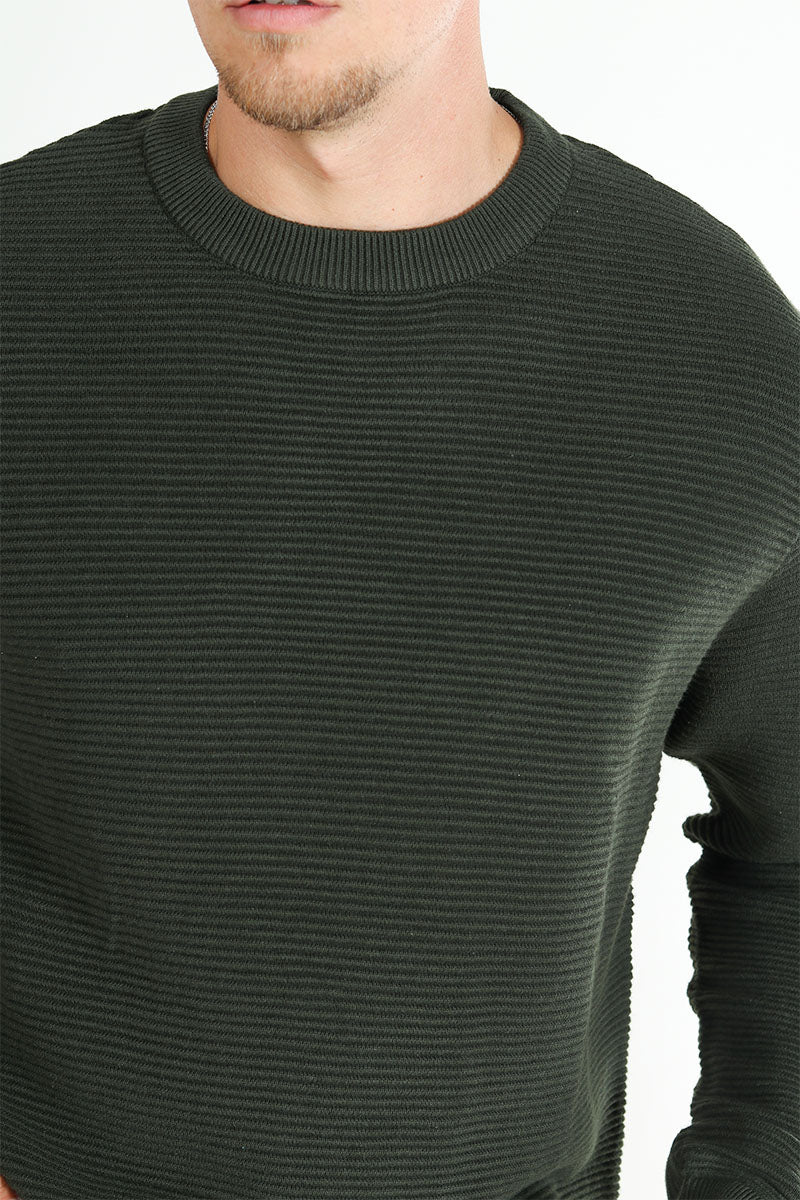 - Strikkegenseren har ribbekanter på falden, ermene og halsen.