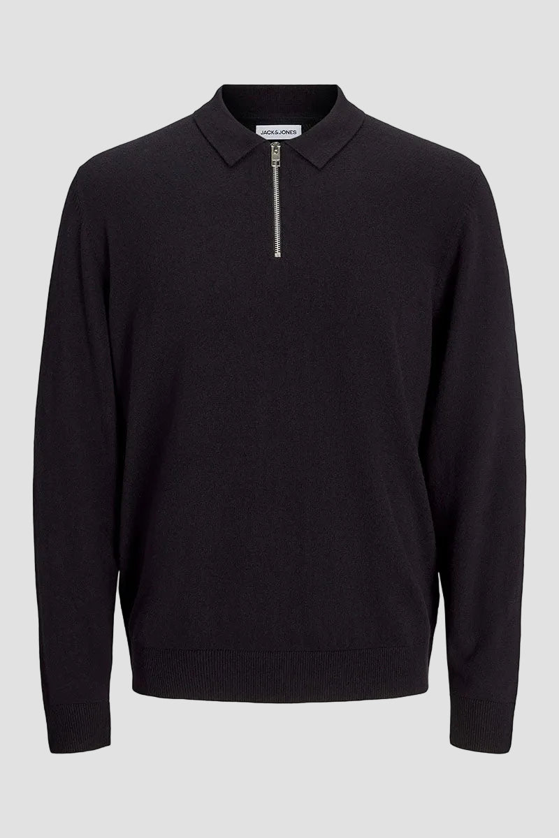 Emil Knit Polo Half Zip LS Black